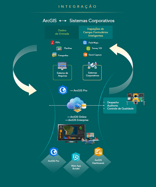 Nesse sentido, as soluções ArcGIS estão prontas para apoiar o levantamento de informações é feito online ou offline, por meio de diversos aplicativos móveis prontos para serem utilizados. As informações são enviadas do campo diretamente para um banco de dados corporativo, dentro do padrão de qualidade exigido por cada necessidade de negócio.