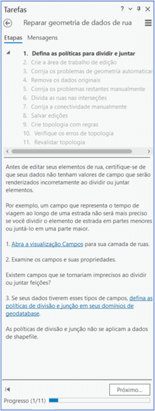 7. Tarefas: O ArcGIS Pro oferece um recurso chamado “Tarefas”, que guia os usuários passo a passo na execução de fluxos de trabalho específicos. Isso simplifica a realização de tarefas complexas, orientando os usuários nas etapas necessárias e fornecendo as ferramentas e os dados relevantes em cada fase.