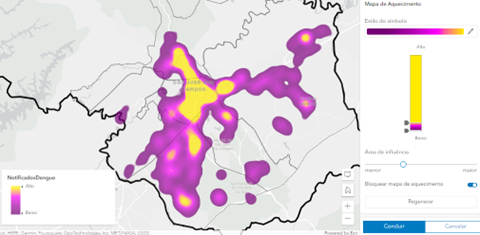 O estilo mapa de calor foi melhorado para suportar efeitos mais rápidos e suaves. Além disso, os mapas de calor agora suportam filtragem, rótulos e pop-ups. Efeitos de recursos filtrados também podem agora ser aplicados para enfatizar áreas que atendam a um determinado critério.