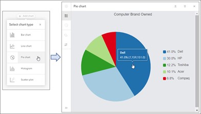 Com esta atualização, os gráficos de pizza agora podem ser adicionados e configurados, juntando gráficos de barras, gráficos de linha, histogramas e gráficos de dispersão.