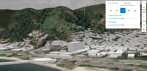 Os efeitos climáticos complementam os efeitos da luz solar que você pode adicionar usando a ferramenta Luz do Dia.