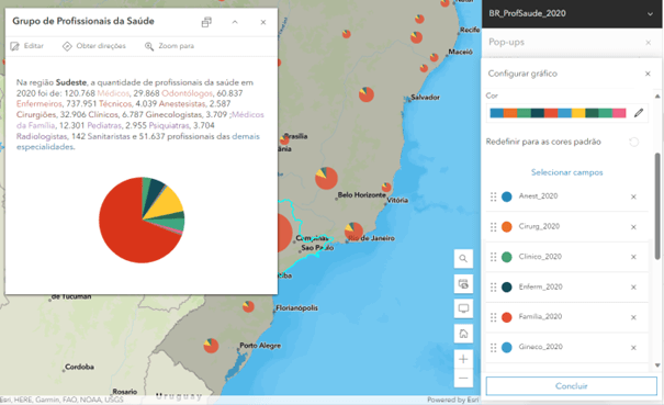 Ao adicionar elementos de gráfico a pop-ups, agora você pode selecionar cores personalizadas e rampas de cores. Você pode usar esse novo recurso para configurar gráficos para usar as mesmas cores definidas no estilo da camada de dados ou aplicar cores personalizadas para se concentrar em dados específicos do gráfico.