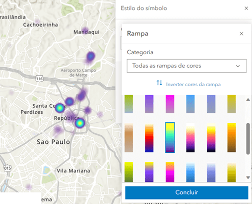 Ao configurar estilos que usam uma rampa de cores, como o Mapa de Calor, cinco novos estilos estão disponíveis. Estes incluem Plasma, Viridis, Cividis, Magma e Inferno, e são projetados para visualização de dados aprimorada e para fornecer suporte para aqueles com deficiências de visão de cores.