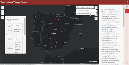 Nesta atualização, o seletor de idioma estará disponível nos modelos de aplicativo Mapa de Mídia, Proximidades, Pesquisa de Zona, Legenda Interativa e Barra Lateral.