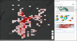 O Map Viewer inclui novas opções para resumir dados de recursos de ponto. O botão Agregação agora permite configurar a categorização de geohash para agregar recursos de ponto em polígonos de resumo. Tamanho da caixa, campos, rótulos e pop-ups também podem ser configurados.