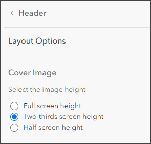 Uma nova opção de formatação está disponível ao configurar o cabeçalho da página inicial da sua organização. Agora você pode definir a altura da imagem da capa para dois terços da tela, como alternativa à tela inteira ou à metade da tela.
