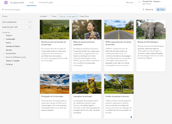 Agora, filtrando por “Indústria: Conservação”, podemos ver 7 soluções disponíveis para endereçar problemas voltados para conservação ambiental.
