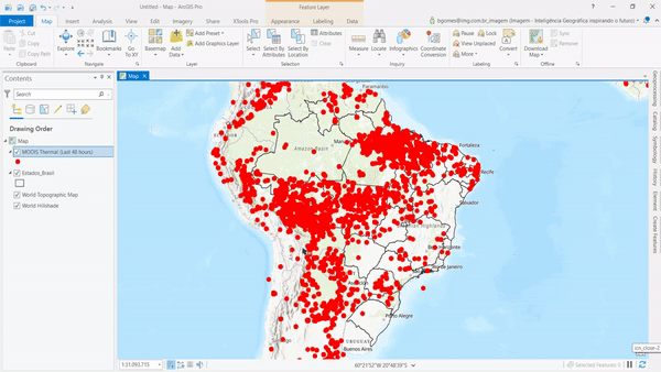 Nesse caso é bom realizar um recorte dos dados do satélite MODIS somente para o Brasil, e inserir informações dos estados dentro dos pontos de calor.