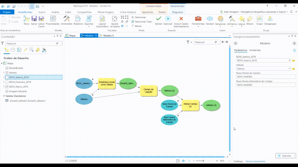 Veja como exemplo o passo a passo a seguir onde demonstramos como você pode utilizar as ferramentas do ArcGIS Pro para iniciar um projeto de automatização de processos. Neste caso você não precisa digitar nenhuma linha de código!