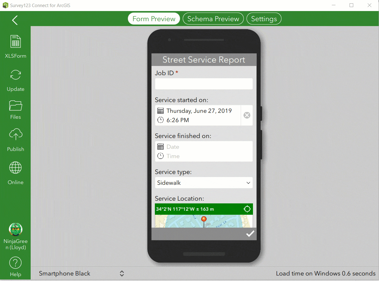 O Survey123 Connect é uma versão desktop do Survey123, projetada para oferecer recursos avançados de criação e personalização de formulários. O Connect fornece ao autor da pesquisa a experiência completa de criação de XLSForm compatível com o Survey123, permitindo ao autor controle total sobre o design da pesquisa e seu comportamento. Esse ambiente de autoria é ideal se você deseja modificar e reutilizar projetos de pesquisa, gerenciar versões de pesquisas ou adicionar funcionalidades complexas.