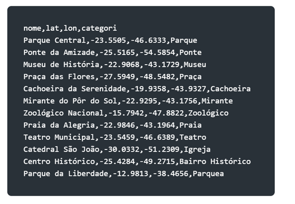 Para criar um mapa significativo, é essencial contar com dados geográficos relevantes. Neste desafio, utilizaremos o conjunto de dados carregados a partir de um arquivo CSV externo. Baixe os pontos de interesse que serão utilizados para carga.Importando os Dados para o ArcGIS Pro