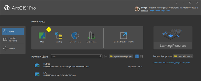1. Abra o ArcGIS Pro e crie um novo projeto de mapa.