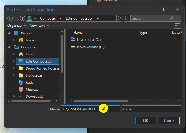 1. No painel Catalog, mapeie a pasta onde você salvou o arquivo “pontos_interesse.csv”.