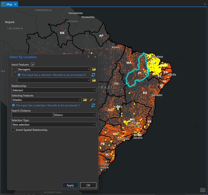 Você pode ainda explorar as ferramentas de seleção por atributos espaciais para identificar a relação entre as camadas. Estas são funcionalidades essenciais na vida de um Analista GIS.