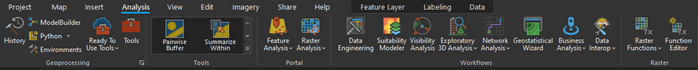 - Clique na guia Análise (“Analysis”) na parte superior do ArcGIS Pro para acessar as ferramentas de análise espacial.