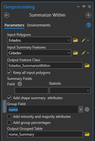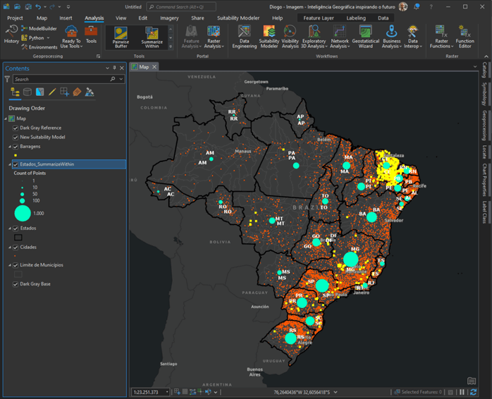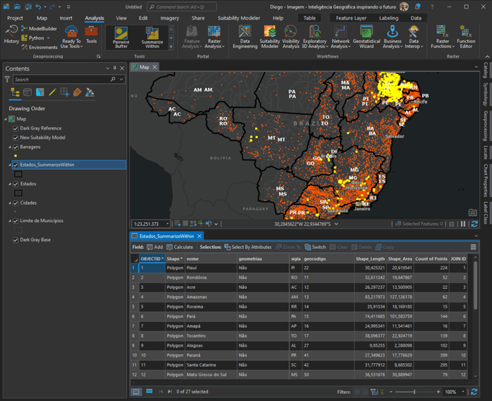 - Utilize as ferramentas de Sumarização e Estatísticas para obter informações valiosas sobre a densidade e estatística de pontos associadas a um estado ou município.