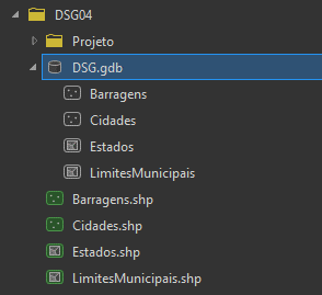 1. Selecione uma camada de dados geoespaciais no file geodatabase utilizado no passo anterior.