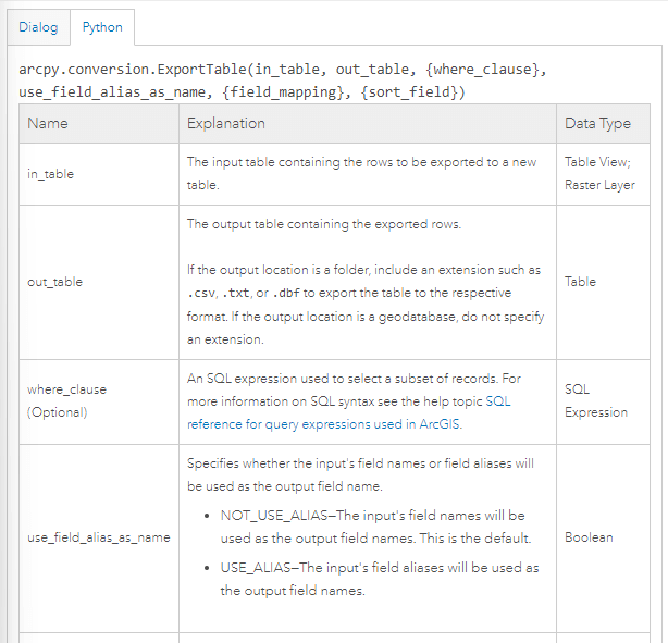 6. Agora vamos exportar os resultados da análise para um novo arquivo CSV com os dados de proximidade das barragens, para identificamos as cidades mais próximas. Para isto vamos utilizar o comando Export Table onde dois parâmetros importantes, a tabela de entrada e a tabela de saída onde se pode salvar o arquivo CSV. Vamos definir antes o parâmetro da variável de saída, salvando a tabela dentro da pasta onde temos nossos dados de entrada.