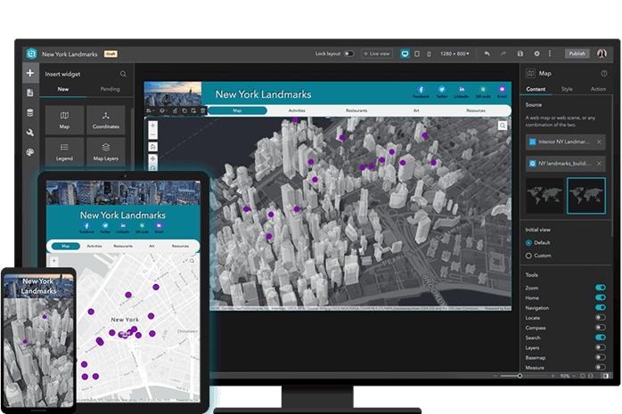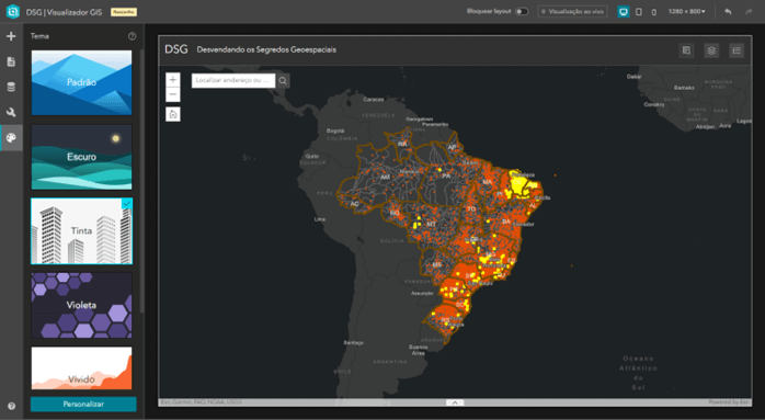2. Componentes Pré-Configurados: A abordagem low code da Esri oferece uma variedade de componentes pré-configurados, como mapas, gráficos, tabelas e widgets específicos de análise. Isso agiliza a criação de funcionalidades sem a necessidade de escrever código do zero.