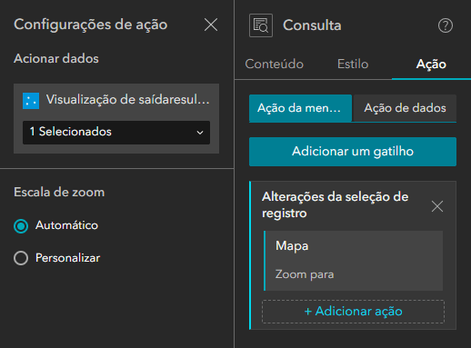 Um ponto interessante dos componentes é a possibilidade de configurar ações, que são disparadas a partir de uma atividade do componente. Você pode ter ações de mensagem ou de dados que são executadas e podem afetar outros componentes da aplicação.