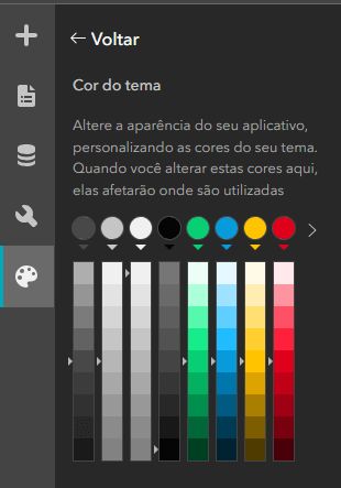 Acesse o ArcGIS Experience Builder e comece um novo projeto. Defina o nome do projeto e selecione um esquema de cores que reflita o visual desejado para a aplicação.