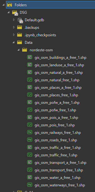 Vamos criar uma pasta DATA em nosso projeto e extrair o arquivo ZIP nesta pasta para explorarmos seu conteúdo dentro do ArcGIS Pro.