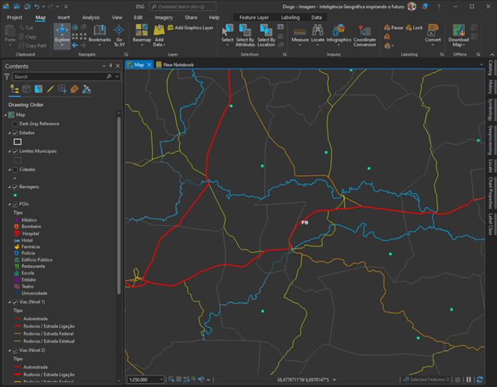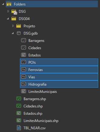 Realize o processo de importação destes dados para o File Geodatabase do projeto, conforme vimos no artigo DSG05.