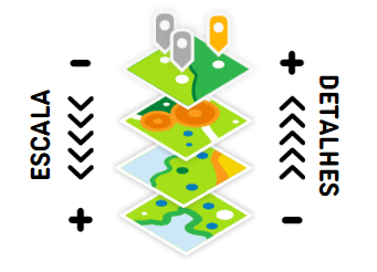 Um mapa deve ser construído em camadas, assim você consegue estruturar a visibilidade de forma ideal para que seu mapa seja simples e consiga apresentar todas as informações de forma clara. Existe um segredo a ser considerado, pense sempre que ao aumentar a escala do mapa você deve diminuir o volume de dados apresentados, e quanto menor for sua escala, maior será o nível de detalhes apresentados.