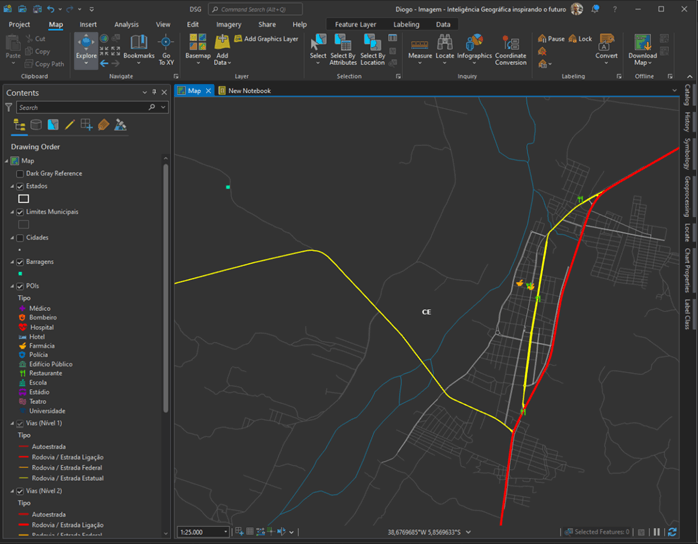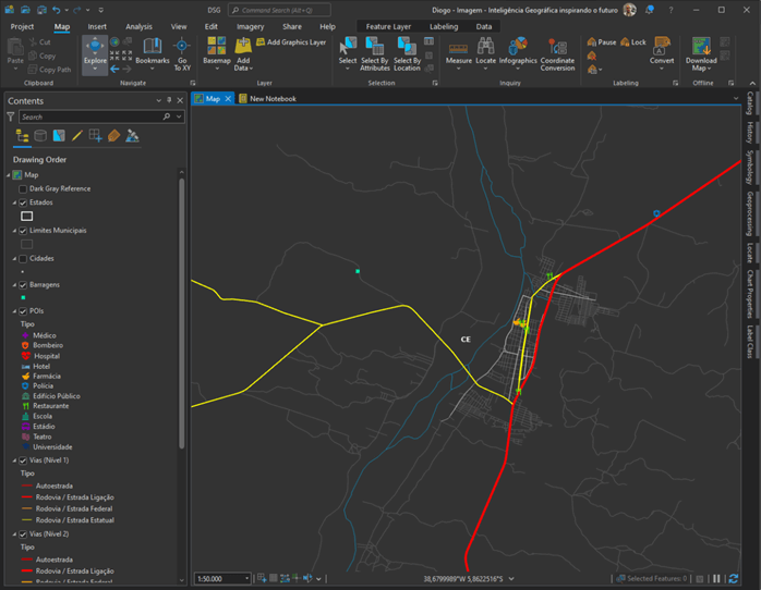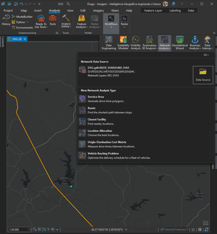 Para nosso modelo, vamos utilizar as funcionalidades Select By Location, Merge ou Union e Network Analyst.
