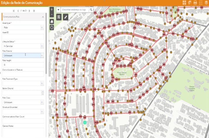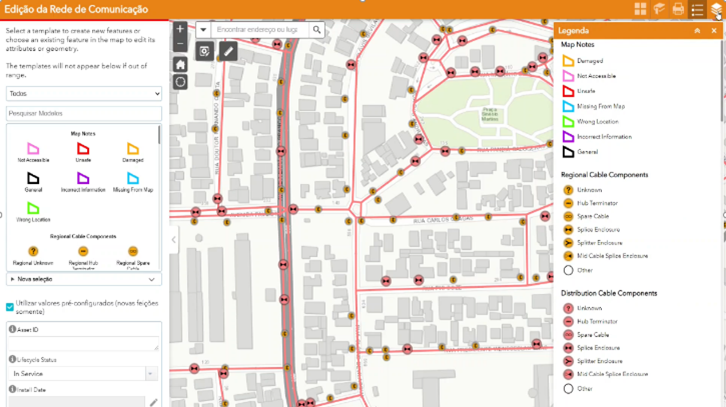 O Gerenciador de dados permite que as equipes de campo capturarem dados de maneira fácil e rápida para todos os elementos de infraestrutura e rede, através do Communications Asset Collector Map.