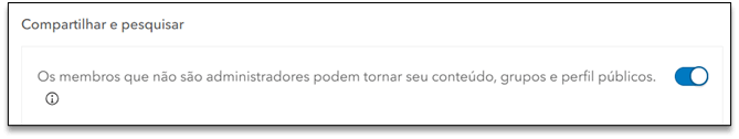 - Compartilhamento público possível a usuários não administradores: Se habilitado, os usuários não administradores terão a opção de deixar livre qualquer conteúdo na web para acesso por qualquer usuário, respeitando as configurações de edição específicas do arquivo.