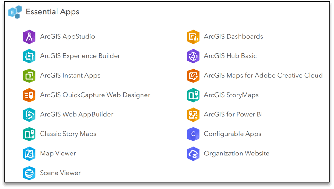 *Aplicativos Essenciais: Aplicativos do ArcGIS disponibilizados para todos os usuários, com diferentes autorizações de uso, acesso via browser