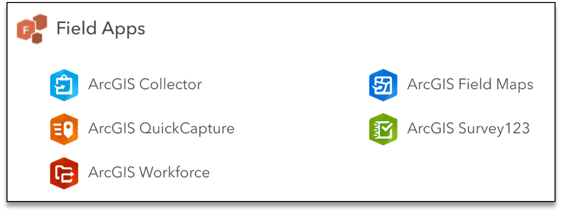| Mobile Worker | Adicionam novas informações a um arquivo preexistente, revisam e editam em ArcGIS Online e Field Apps | Aplicativos essenciais*, Office Apps** e Field Apps*** – visualização e edição | Viewer e Editor de Dados |
