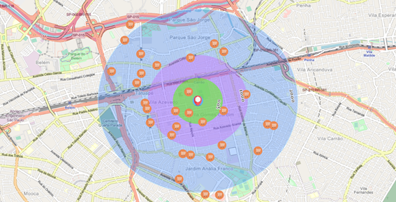 A análise utilizando a área de influência orienta a localidade de onde você irá realizar a captação de informações sociodemográficas para completar seu plano de expansão e diferenciar sua estratégia de seus concorrentes.