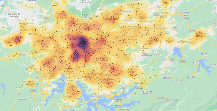 Este tipo de análise, a partir do geomarketing, nos auxilia na realização de um plano de expansão de novas lojas, isto é, busca ampliar a identificação e visualização das áreas potenciais na criação de padrões a partir dos dados consolidadas, mas é possível replicar em lojas já existentes.