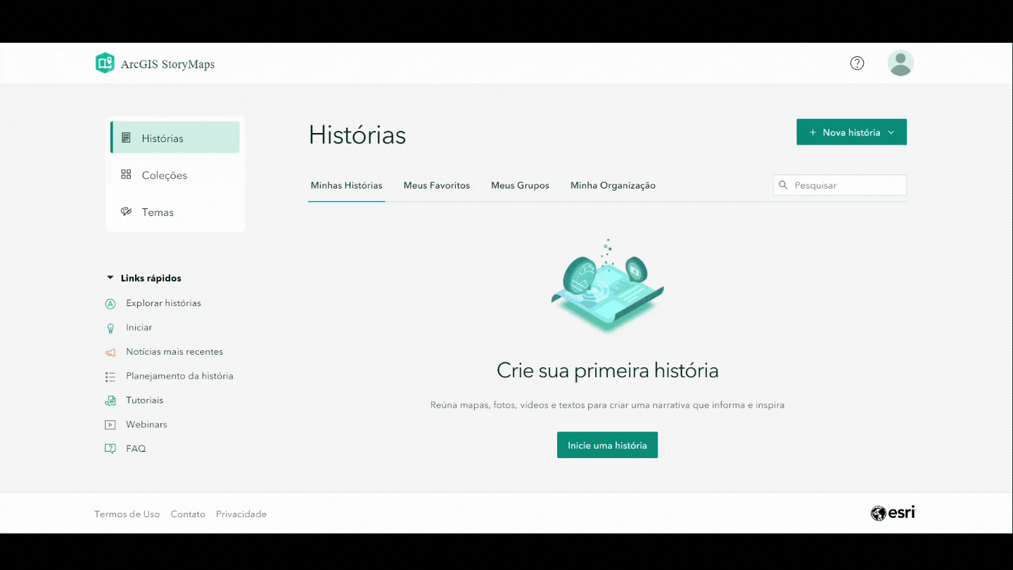 Contar histórias é uma das melhores maneiras que temos para repassar informações, gerar engajamento e nos conectar uns com os outros. E para isso, os StoryMaps são extremamente práticos e intuitivos, possuindo funções para construir o texto, gerar mapas expressos, embutir notícias e vídeos, e muitas outras. Agora fica o convite para que acesse sua conta no ArcGIS Online e crie você também a sua história!