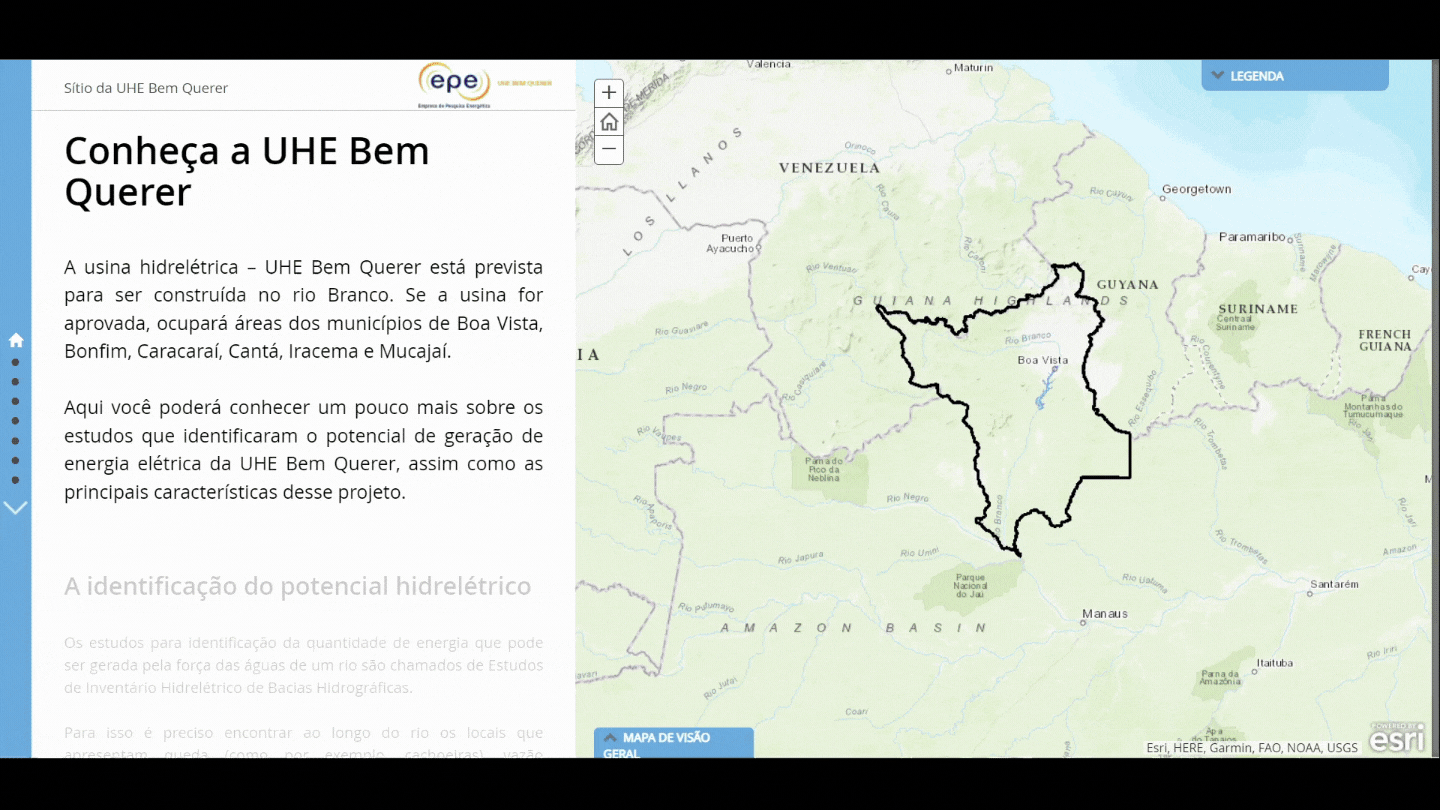 Para empresas que trabalham com energia, estudar e divulgar a viabilidade de um projeto para construção de uma usina é uma etapa de grande importância. Ao chegar nessa fase, a EPE (Empresa de Pesquisa Energética) utilizou um StoryMap para realizar essa função, tornando possível explorar os detalhes do projeto da usina, a área ocupada, os municípios, a infraestrutura existente, além de conhecer um pouco mais sobre como esse projeto foi concebido.