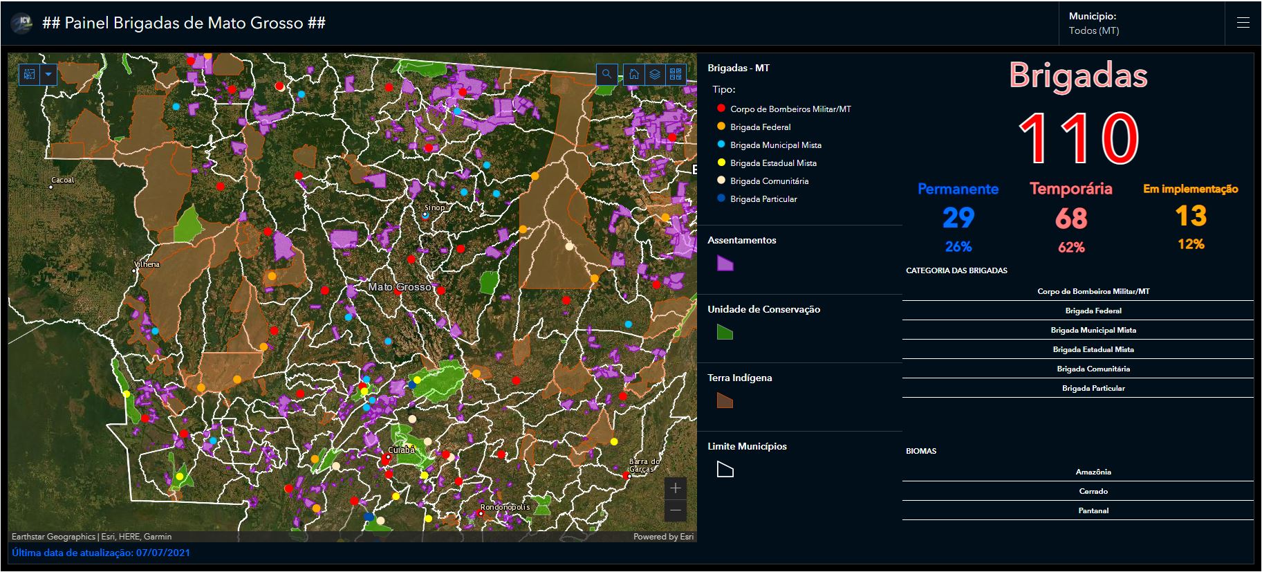 Além do painel, é possível ainda navegar sobre uma apresentação de Mapas Online, contendo a localização e a descrição de atuação de cada brigada comtemplada no mapeamento.