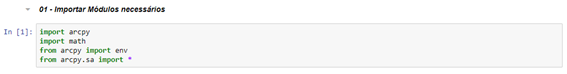 Conforme apresentado na figura abaixo, a primeira célula do notebook foi destinada à importação das bibliotecas necessárias para execução do script.