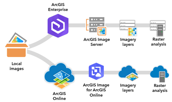 Para organizações que já possuem uma organização ArcGIS Online, o ArcGIS Image pode ser usado para adicionar recursos de gerenciamento de imagens. As organizações podem criar camadas de imagens que podem ser hospedadas e usadas em toda a organização.