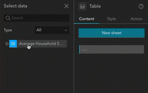 Atualmente, você deve adicionar camadas ao widget uma por uma. Na próxima versão, planejamos adicionar a capacidade de adição em lote, como fizemos com o widget de Tabela acima.