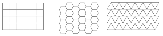 Grades de forma regular devem ser compostas exclusivamente por triângulos equiláteros, quadrados ou hexágonos.  Essas três formas de polígonos são as únicas que podem se encaixar perfeitamente ao serem repetidas várias vezes, borda a borda, para cobrir uma área sem que haja lacunas ou sobreposições, criando então uma grade uniformemente espaçada.