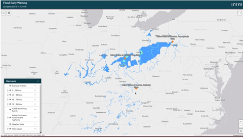 Por meio de seu ambiente GIS atual, os clientes da Esri agora podem acessar os dados quase em tempo real e de alta resolução da ICEYE para eventos de catástrofes naturais em todo o mundo. Essas informações, incluindo a extensão das inundações e as medições de inundação no nível da propriedade, são cruciais para a tomada de decisões críticas durante desastres naturais.