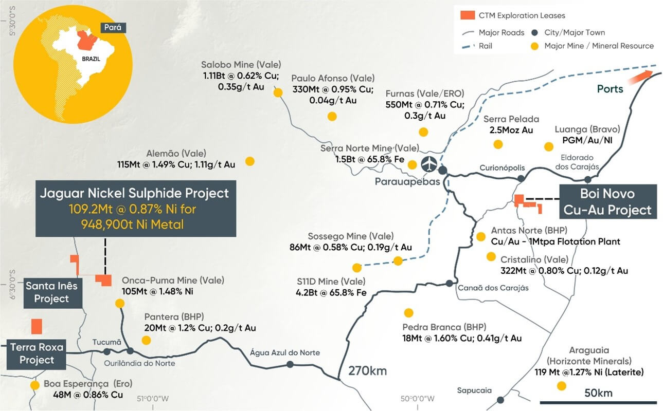 A Centaurus Metals é uma empresa australiana de exploração mineral e seu principal ativo representa o Projeto Jaguar, um depósito de sulfeto de níquel, localizado na Província Mineral de Carajás, no Pará. Há também outros projetos em execução, como o Projeto Santa Inês, Projeto Terra Roxa e Projeto Boi Novo (Figura 1).