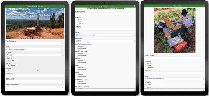 Além da amostragem, o ArcGIS Survey123 é utilizado para checklist de segurança em diversas atividades, incluindo sondagem. Antes de acessar áreas de sondagem, abrir picadas, e durante a avaliação dos equipamentos de geofísica e analisadores geoquímicos, os técnicos utilizam cadernetas digitais para garantir que todos os procedimentos de segurança sejam seguidos rigorosamente. Isso não apenas assegura a integridade dos dados coletados, mas também promove um ambiente de trabalho seguro para toda a equipe envolvida no projeto.
