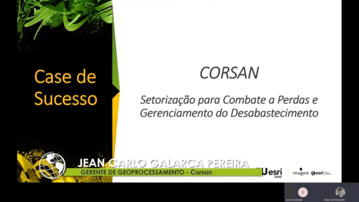 O case de sucesso da Corsan no EU Esri 2020, apresentado por Jean Carlo Pereira, do departamento de informações e...